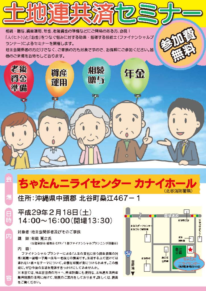 本会では、本会所属の地主会の地権者の方とそのご家族を対象に、専門家(ファイナンシャルプランナー)による資金資産の対策に関する講演会(セミナー)と土地連共済融資あっせん制度に関する紹介(説明、相談)を以下により行います。