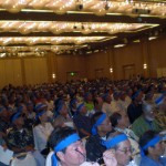 軍用地主総決起大会(11月13日、宜野湾市)が1,400人の参加のもとで、大会決議が採択され、参加者全員で、がんばろう三唱を行いました。本会では、大会での決議文に基づいて11月16日より全役員で上京し、防衛大臣等へ要請を行う予定です。